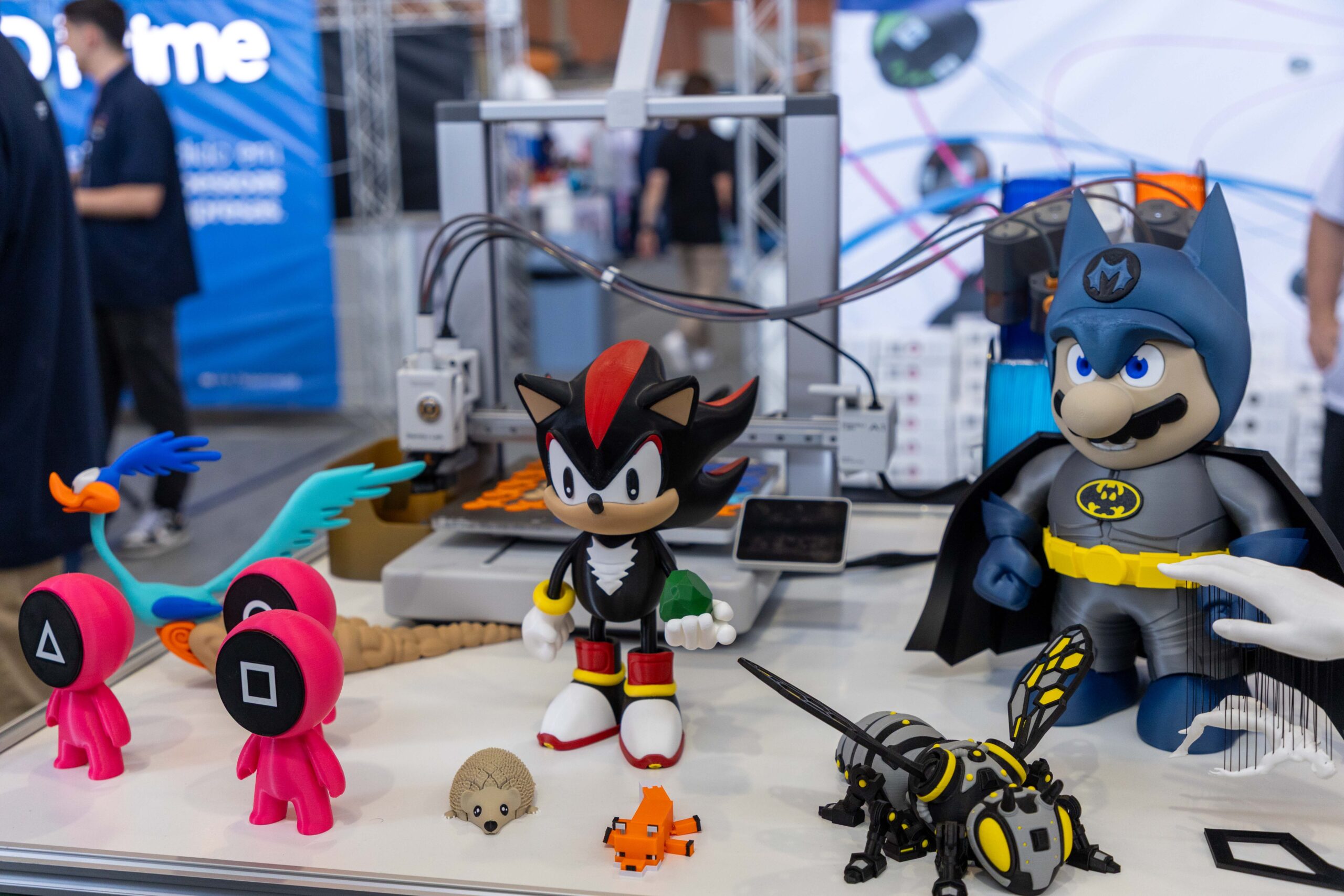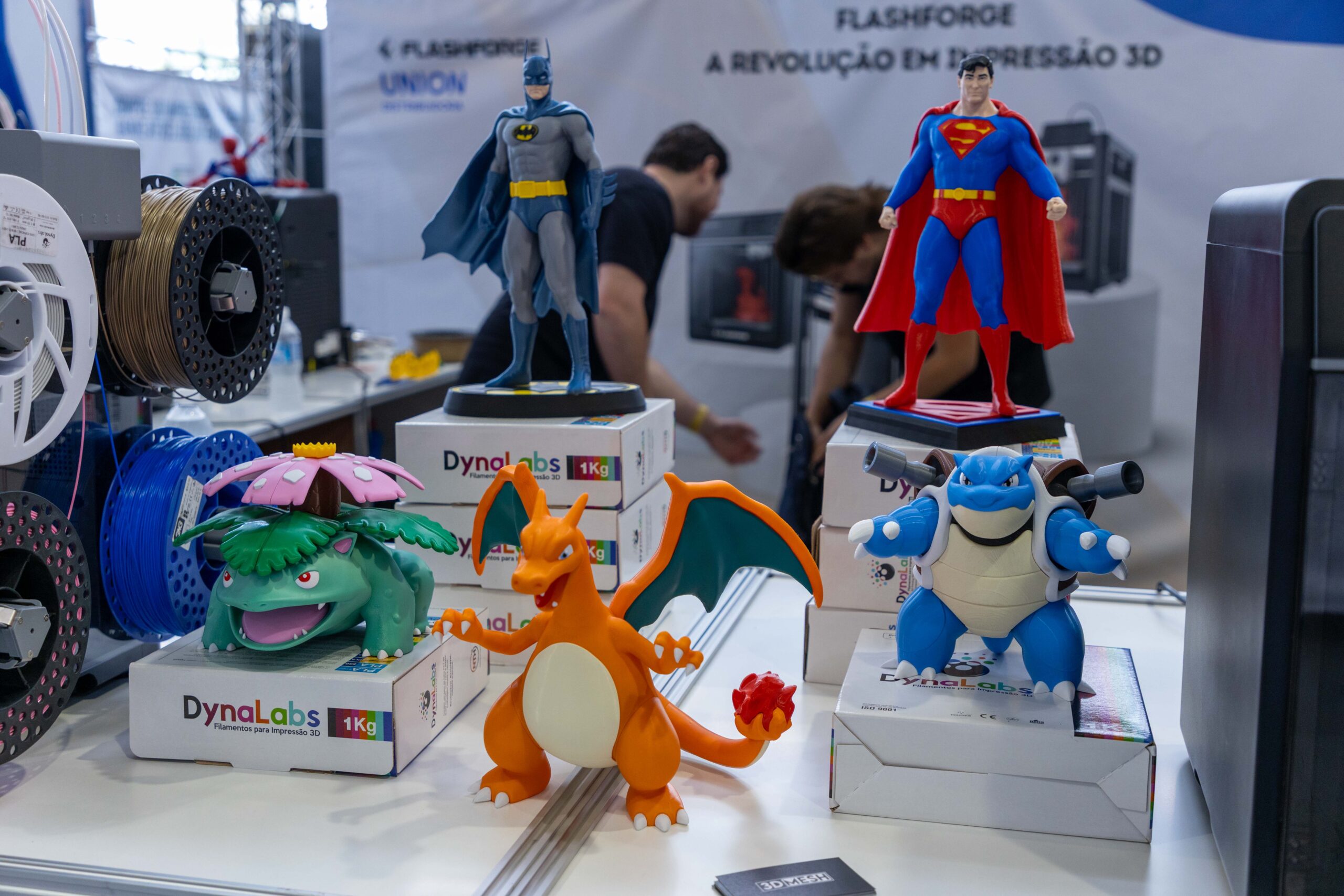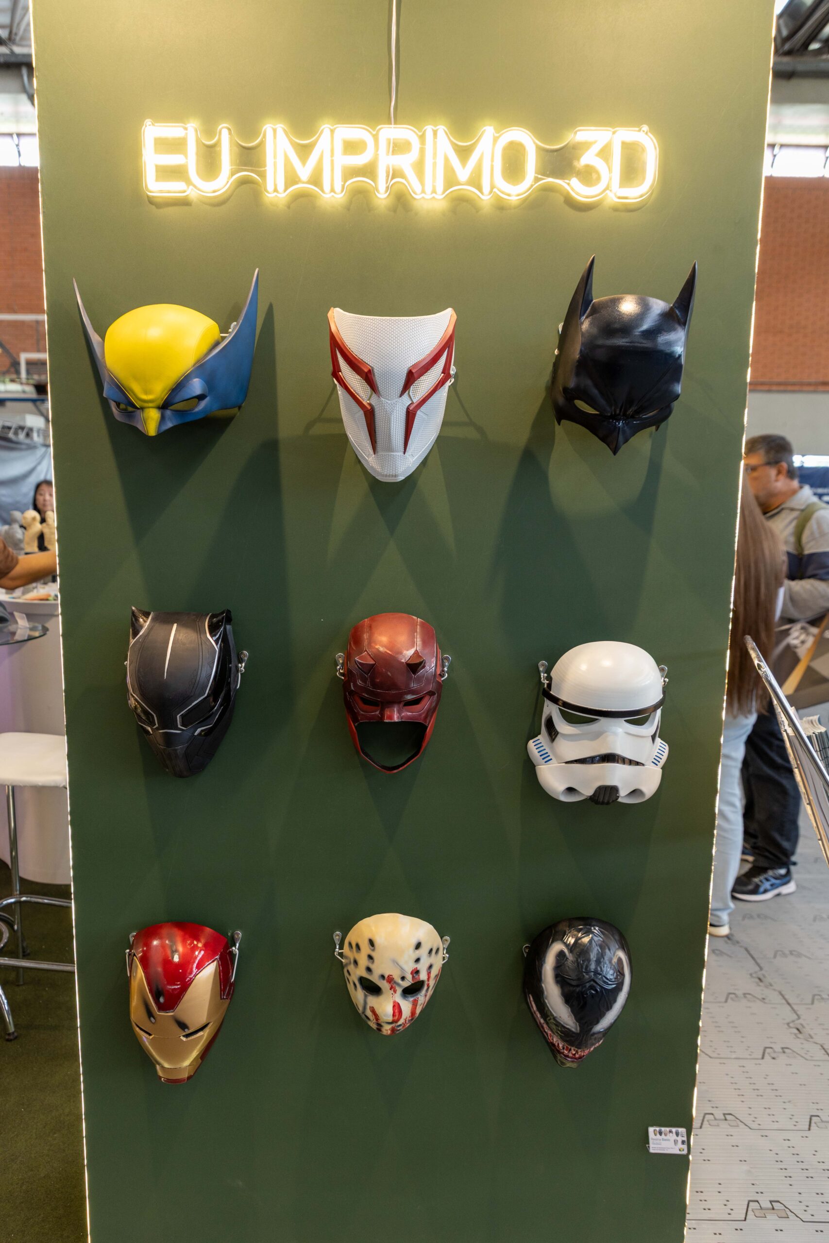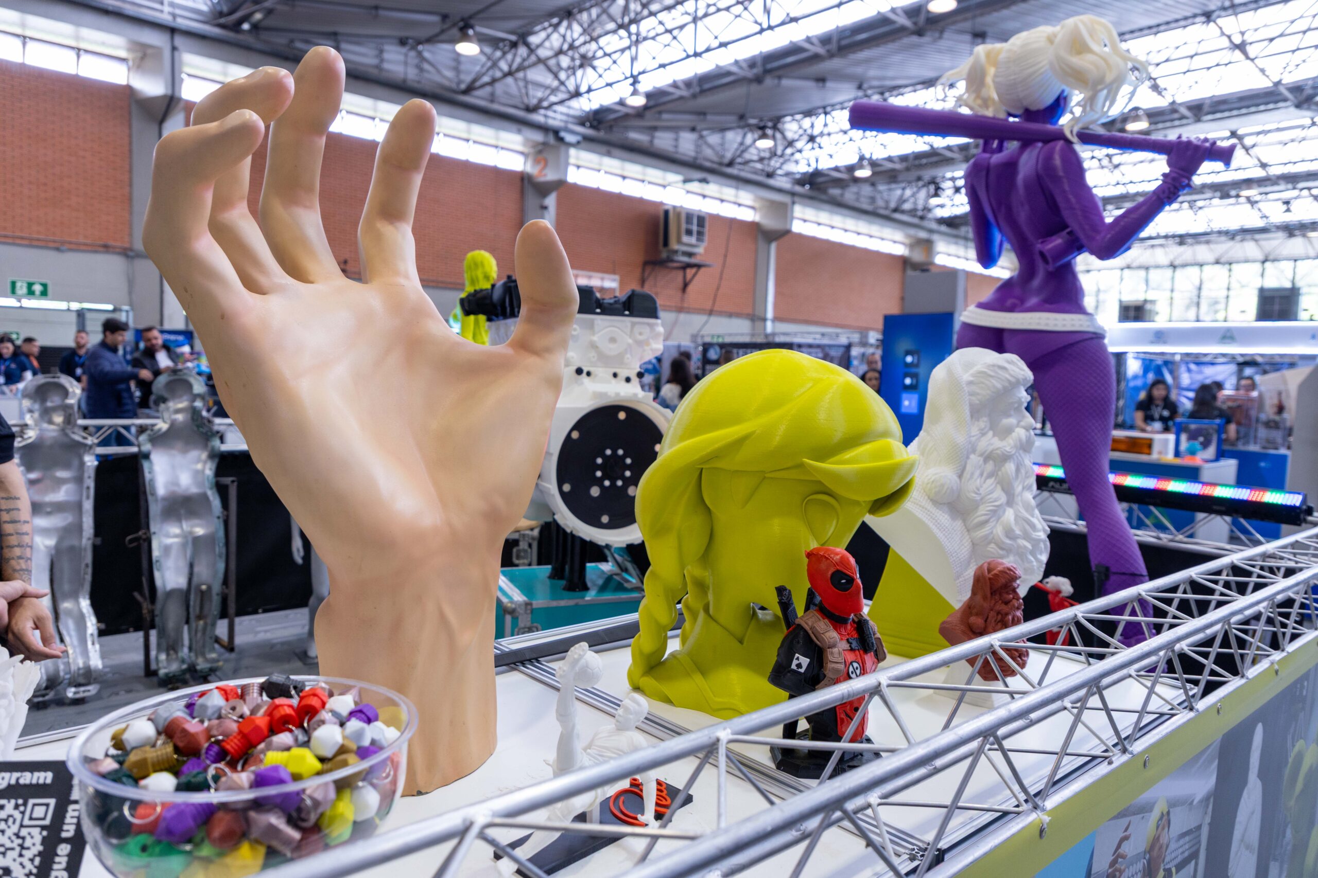 - Impressões Gigantes: Peças como um “Batman” em tamanho real, impresso em uma única peça, e um “Homem de Ferro”, que demonstrava o poder do pós-processamento com aplicação de primer e pintura automotiva, serviam como âncoras visuais, atraindo multidões.