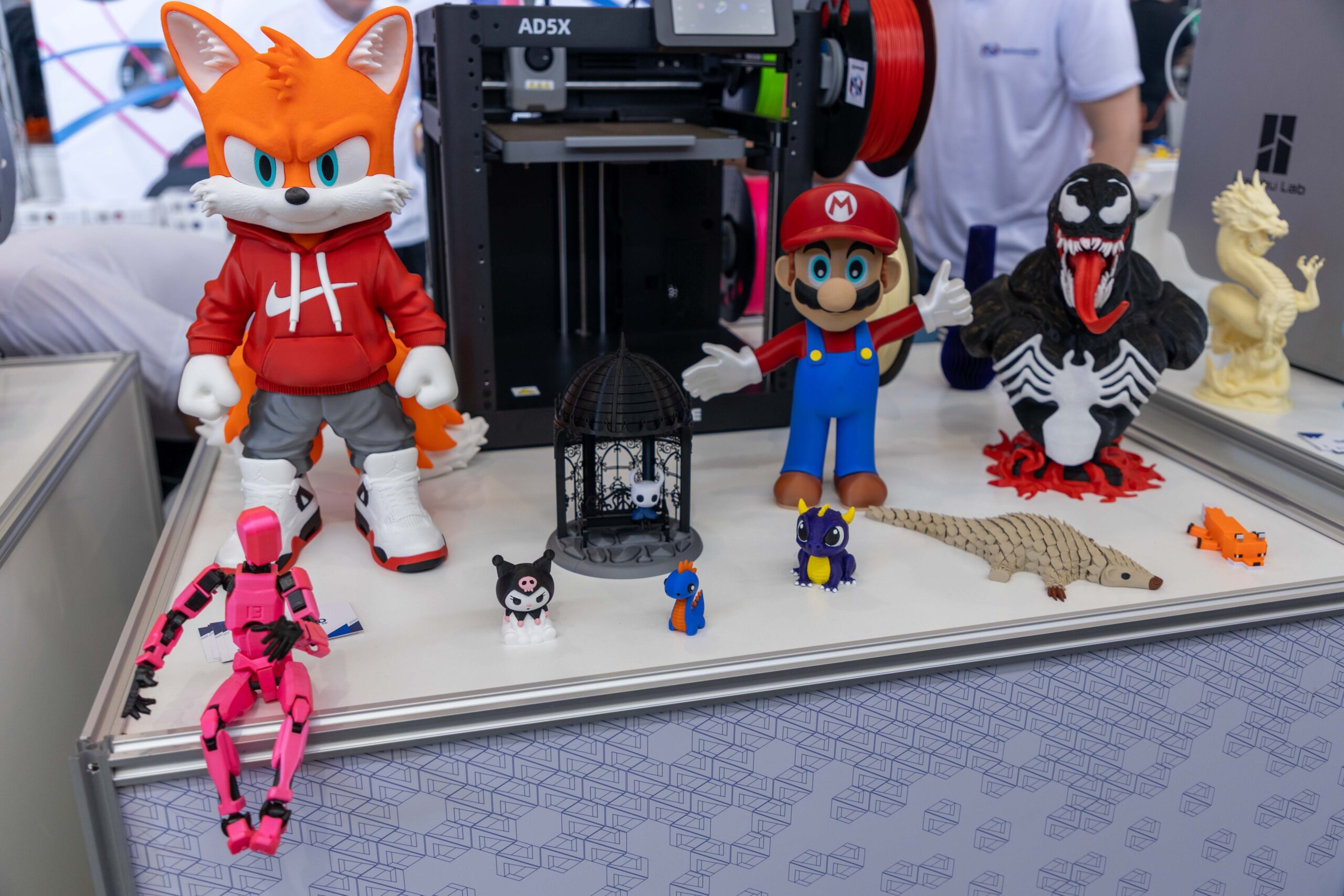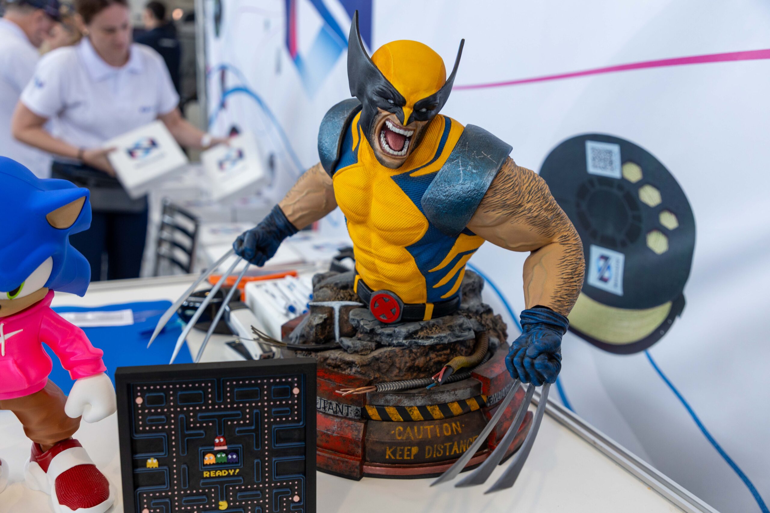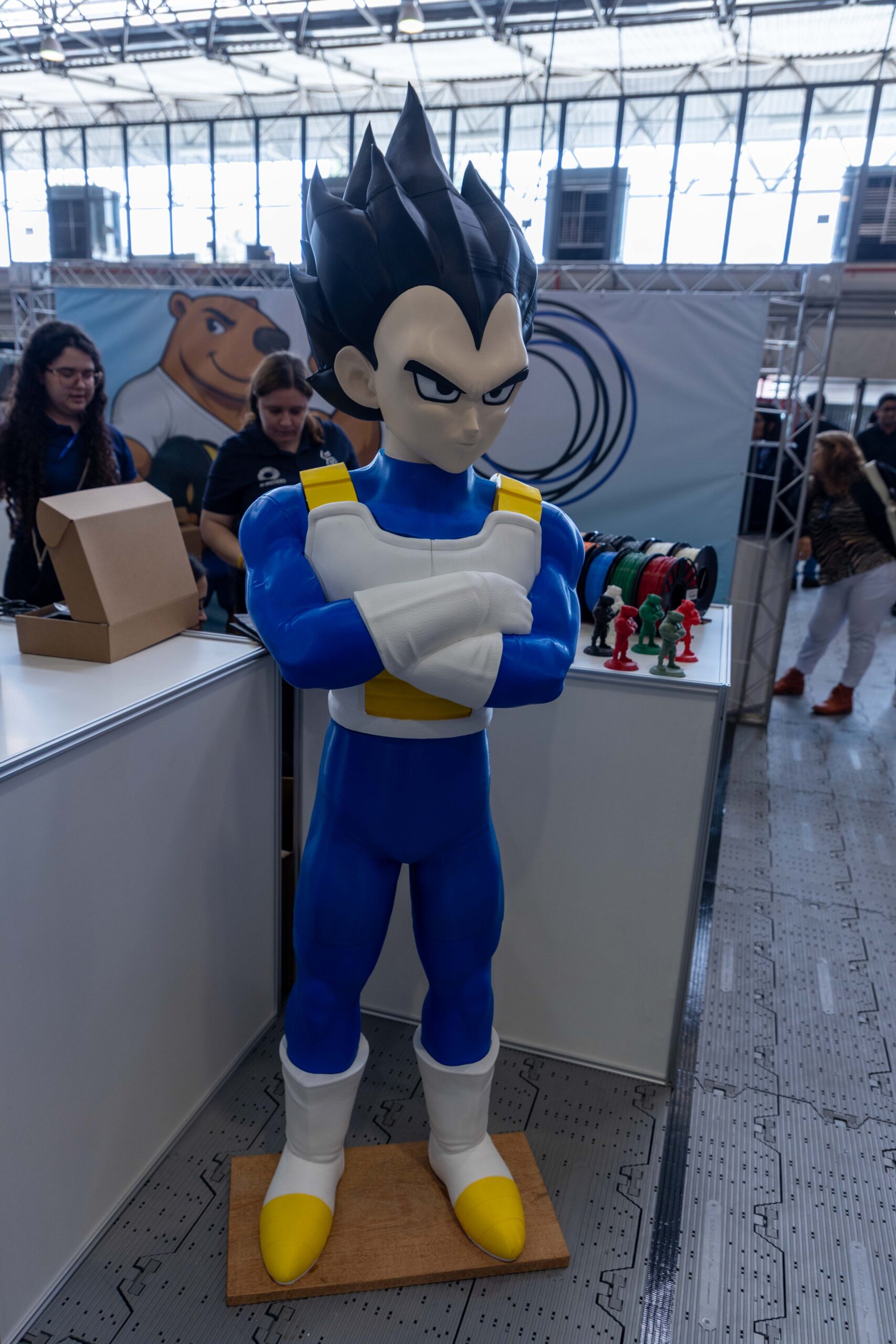 - Impressões Gigantes: Peças como um “Batman” em tamanho real, impresso em uma única peça, e um “Homem de Ferro”, que demonstrava o poder do pós-processamento com aplicação de primer e pintura automotiva, serviam como âncoras visuais, atraindo multidões.