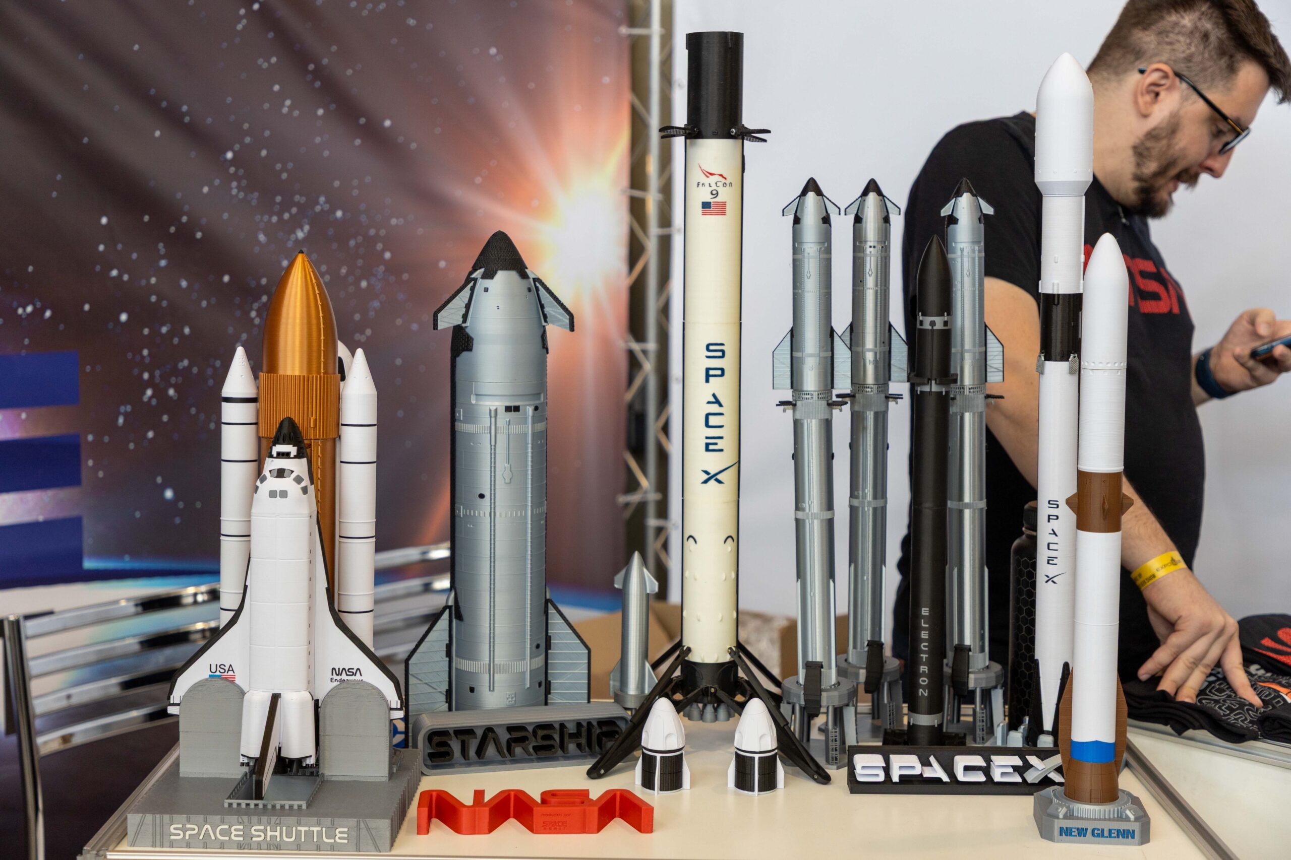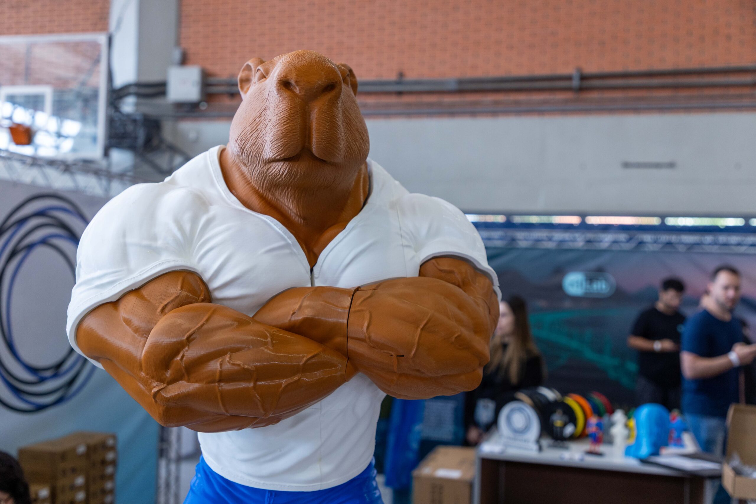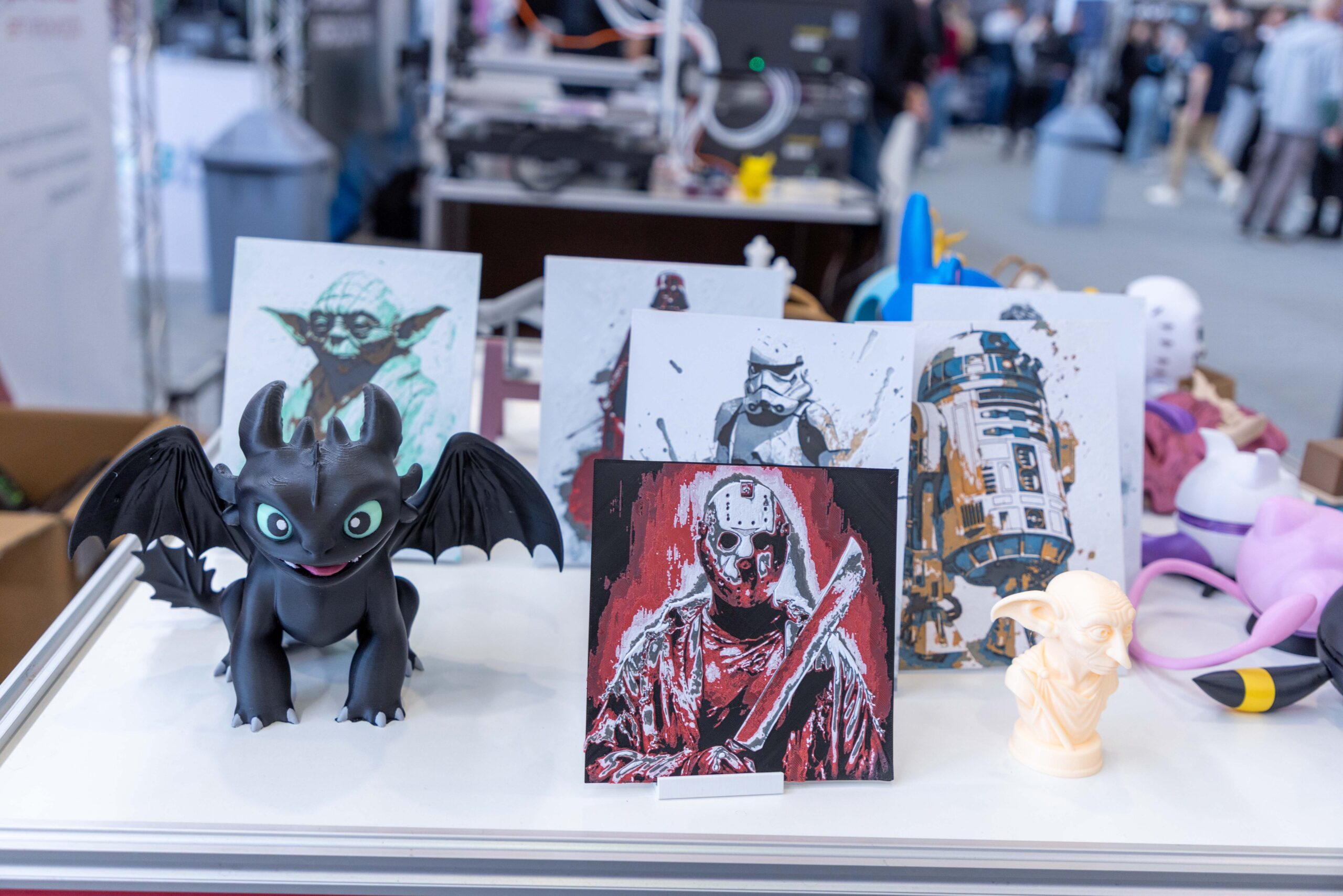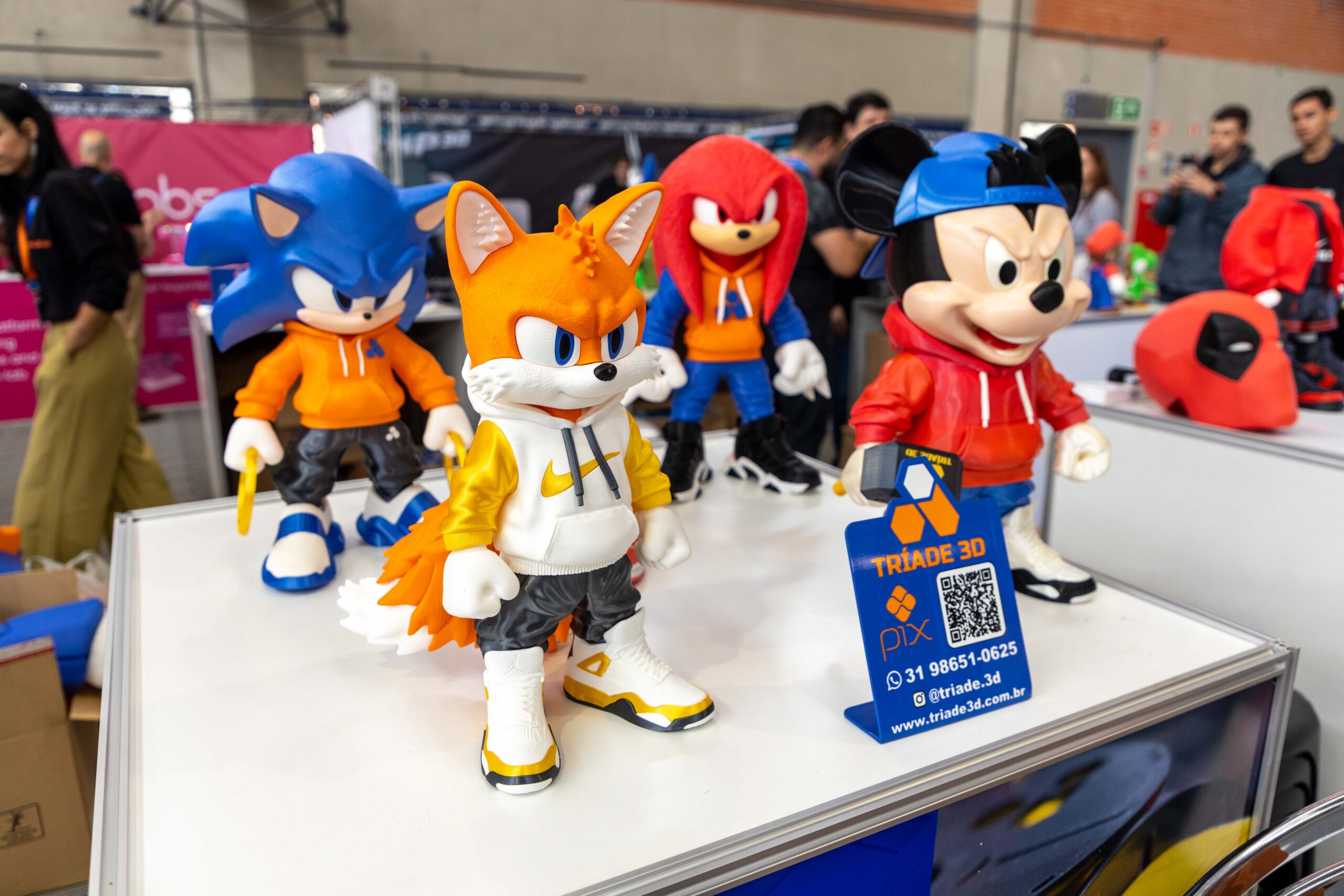 - Impressões Gigantes: Peças como um “Batman” em tamanho real, impresso em uma única peça, e um “Homem de Ferro”, que demonstrava o poder do pós-processamento com aplicação de primer e pintura automotiva, serviam como âncoras visuais, atraindo multidões.