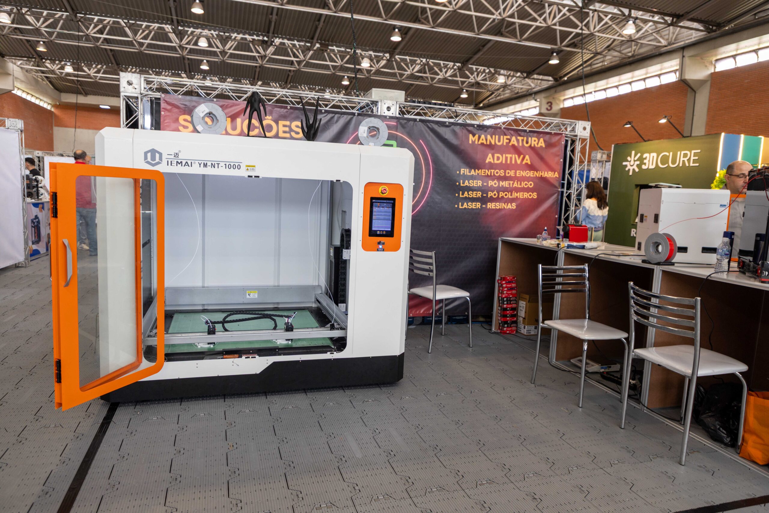A capacidade da impressão 3D de materializar o digital em larga escala foi o grande espetáculo visual da feira.