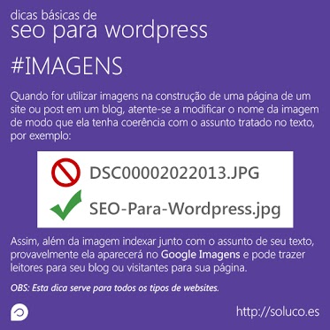 Fica bastante claro que é importante renomear as imagens conforme o seu conteúdo, evitando as nomenclaturas, no formato padrão, que as câmeras oferecem. Essa dica de SEO é tão básica quanto a comentada anteriormente, dessa forma, é fundamental que seja aplicada, auxiliando também na indexação do blog ou site em questão.